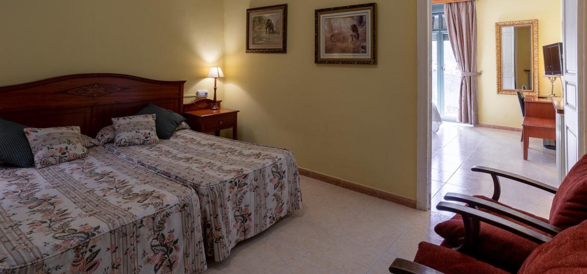 Habitaciones con baño compartido por 4 personas que pueden tener una cama doble y dos individuales o 4 camas individuales con vistas al jardín y la piscina y el puente nuevo de Camprodon